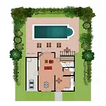 Η βίλα διαθέτει 2 υπνοδωμάτια. Στα 2 μπάνια έχει ξεχωριστή τουαλέτα, μπανιέρα και ντους.